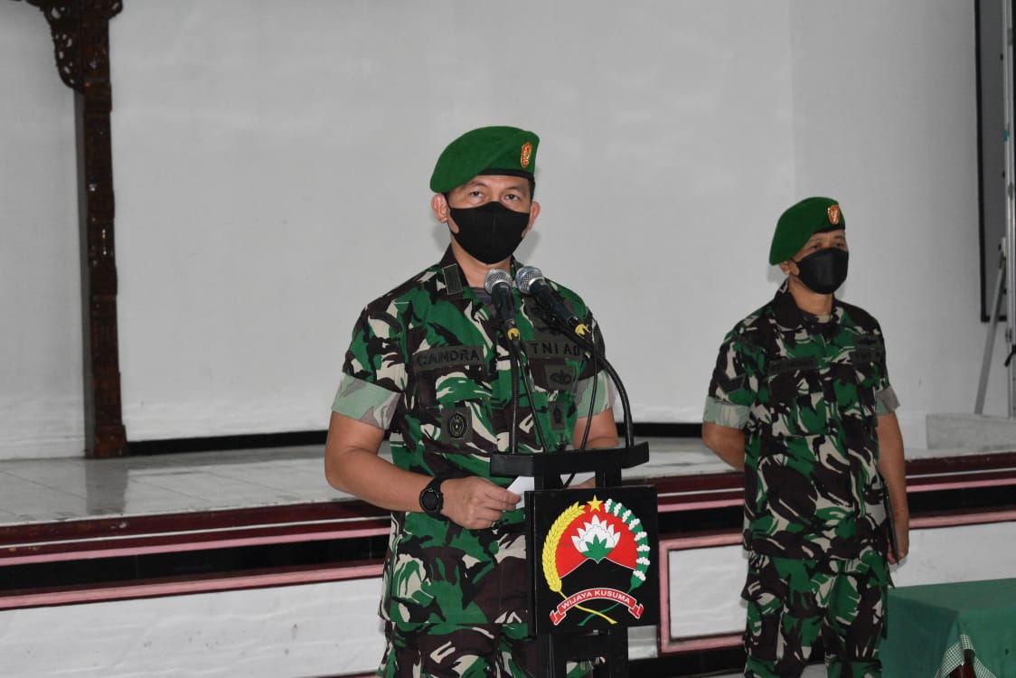 Laporan kenaikan pangkat Perwira dan Pelantikan kenaikan pangkat Bintara dan Tamtama, dipimpin oleh Kasrem 071/Wijayakusuma Letkol Inf Candra S.E., M.I.Pol., mewakili Danrem 071/Wijayakusuma Kolonel Inf Dwi Lagan Safrudin, S.I.P., berlangsung di Gedung Pertemuan A. Yani Makorem 071/Wijayakusuma, Sokaraja, Banyumas. Jumat (1/4/2022).