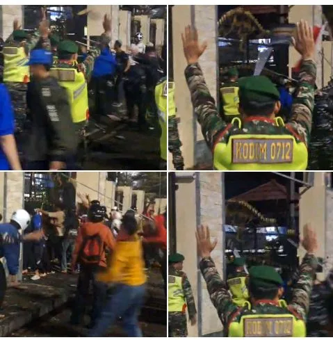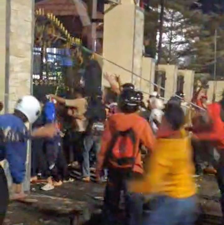 Polisi yang berjaga berusaha menahan gelombang massa. Namun, eskalasi yang meningkat memaksa aparat menembakkan gas air mata ke arah kerumunan untuk membubarkan aksi. Ledakan gas air mata membuat massa panik dan sebagian berlarian ke arah jalan protokol kota.