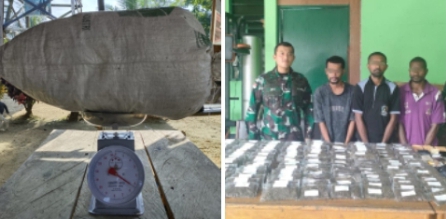 “Dari hasil pemeriksaan diperoleh Narkotika Jenis Ganja Kering seberat 5,4 Kg yang telah dikemas menjadi 178 bungkus siap untuk diperjual belikan. Ganja Kering tersebut sedianya akan dibawa ke daerah Arso dan diserahkan kepada oknum berinisial RN yang ternyata merupakan seorang narapidana di Lapas Doyo Kota Jayapura dan akan dijual dengan harga Rp. 1.000.000 per bungkusnya” ujar Kapten Inf Sutan.