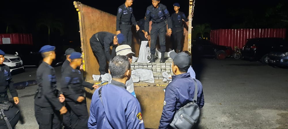 Di sekitar truk tersebut terlihat sejumlah anggota Sat Brimob Polda Kep Babel berseragam khusus dengan senjata lengkap sedang berjaga. Di dalam truk tersebut terlihat masih terdapat sejumlah barang bukti.