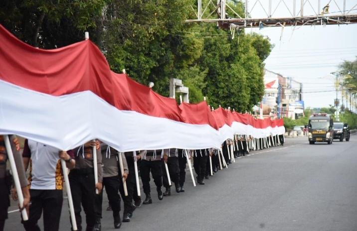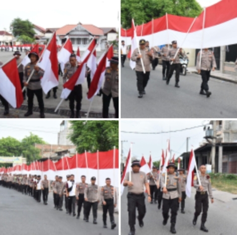 infoindonesiainews.com | BIREUEN – Semangat Perjuangan, Polres Bireuen dan Jajaran Kirab Bendera Merah Putih sepanjang 100 M