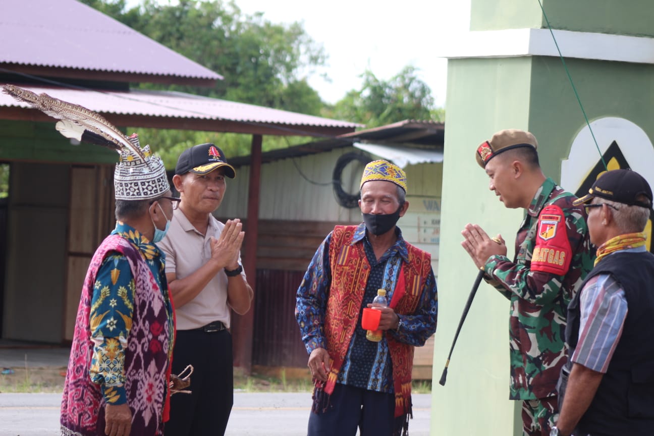 KAPUAS HULU | Hari pertama Tugas Operasi Satgas Pamtas Ri-Malaysia, Yonarmed 19/105 Trk Bogani menerima Acara Tradisi adat penerimaan oleh Tertua Adat setempat, (Minggu, 5 Juni 2022).
