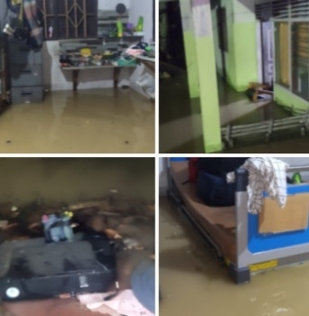 Pada akhirnya air pun naik meluap kedalam bangunan Puskesmas yang merendam mess petugas Puskesmas Peunaron, ruang isolasi, tempat tidur pasien , kursi dan printer komputer yang ada di Puskesmas Peunaron tersebut.