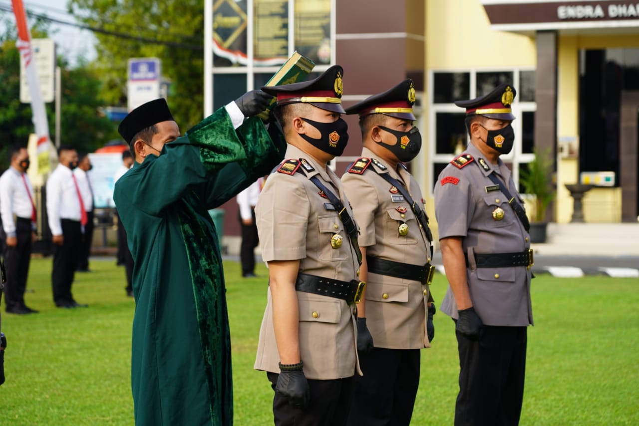 dalam pelaksanaannya seluruh peserta upacara menerapkan protokol kesehatan. Dalam kegiatan tersebut dihadiri Pejabat Utama Polres Batang dan Muspika.