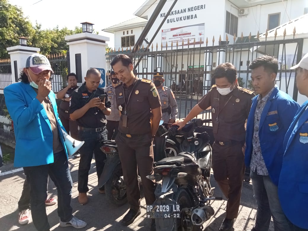 Aspirasi dari Adik- adik Mahasiswa yang diterima oleh Pihak kejaksaan Negeri Kab. Bulukumba melalui Kasi Intel Kejari Bulukumba bernama Yusran Bersama Kasi Pidsus Kejaksaan Negeri Bulukumba bernama Andi Thirta Massaguni.