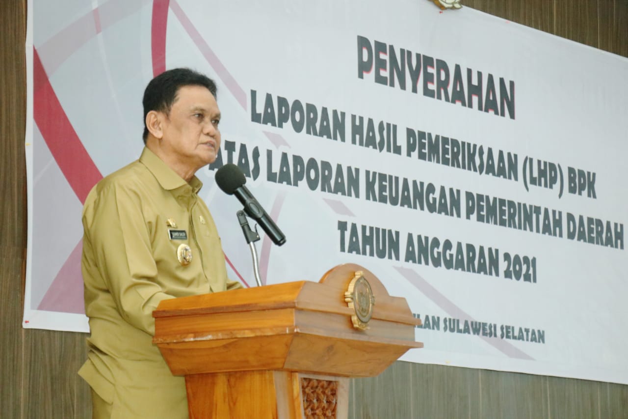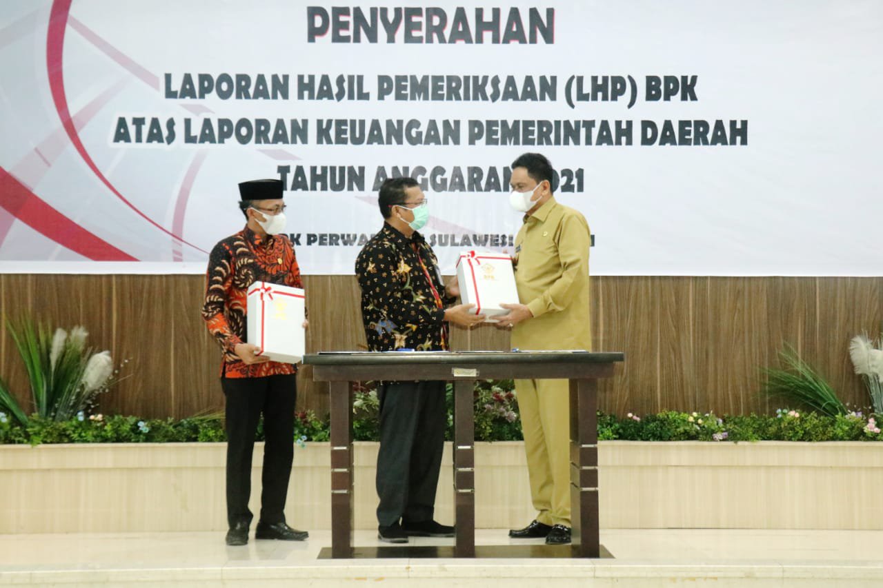 Kepala BPK Perwakilan Makassar, Paula Henry Simatupang, SE, M.Si, Ak, CA, CFrA,CSFA,CPA (Aust) mengumumkan hasil Pemeriksaan Laporan Keuangan Tahun 2021, berupa Predikat Opini Wajar Tanpa Pengecualian (WTP).