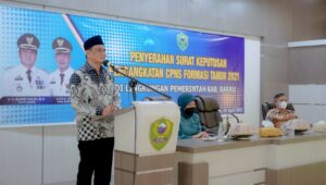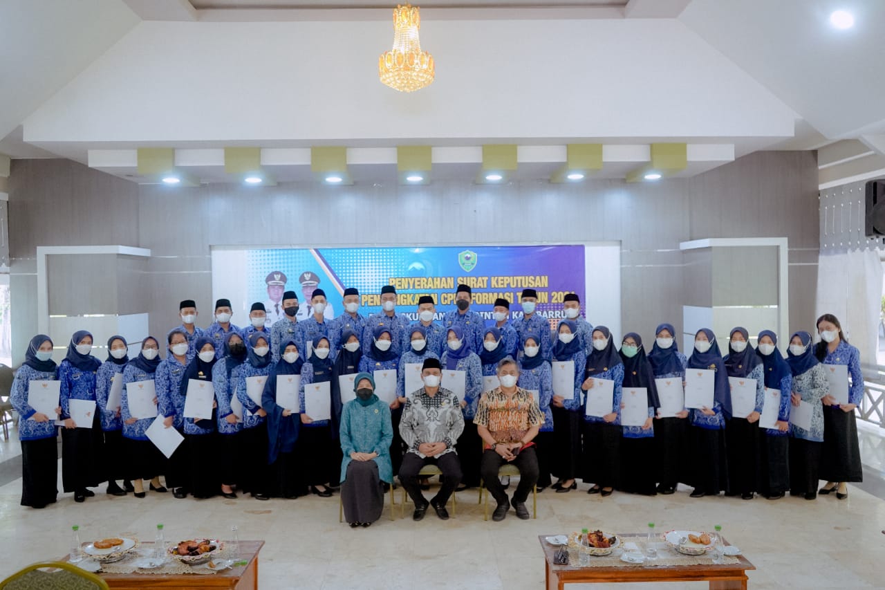 BARRU | Memilih hari Jumat sebagai hari Berkah, Pemerintah Kabupaten Barru serahkan SK CPNS hasil dari Test CAT CPNS Barru Tahun 2021, di Baruga Singkeru Ada’e, Jumat (1/4/2021).