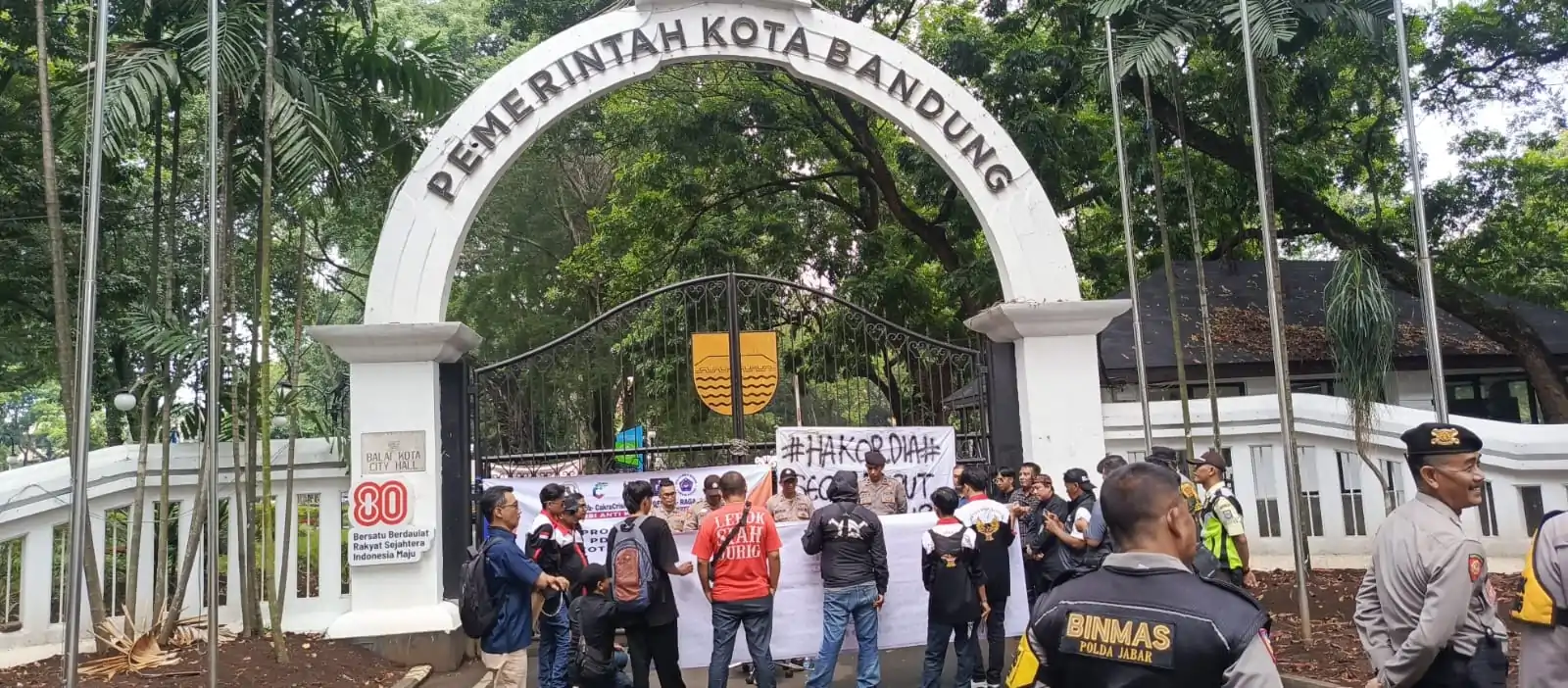 BALAIKOTA BANDUNG – Aliansi Aktivis Anti Korupsi yang tergabung “Maung Kaboa, Cakra Crisis Center, GEBRAK, RAGA, FORUM SAKSI dan Aktivitas Anak Bangsa” melaksanakan unjuk rasa di depan Gedung DPRD Kota Bandung dan Balaikota Bandung, Kamis (4/12/2025).