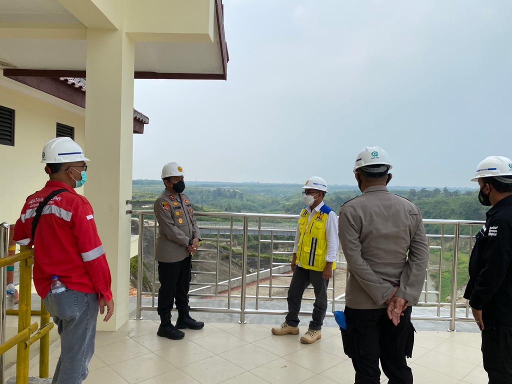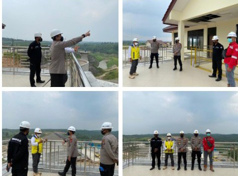 Kapolres Lebak Polda Banten AKBP Wiwin Setiawan,SIK,M.H. didampingi Kasihumas Iptu Jajang Junaedi dan Kasipropam Ipda M.S. Mochtar meninjau dan melihat langsung perkembangan pembangunan Bendungan Karian.
