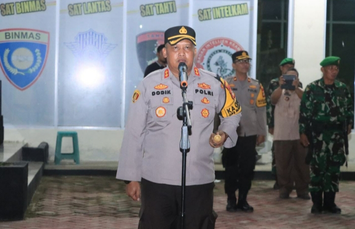 Kapolres AKBP Dodik Susianto, S.I.K yang memimpin apel meminta keikhlasan seluruh personel dalam melaksanakan tugas pengamanan.
