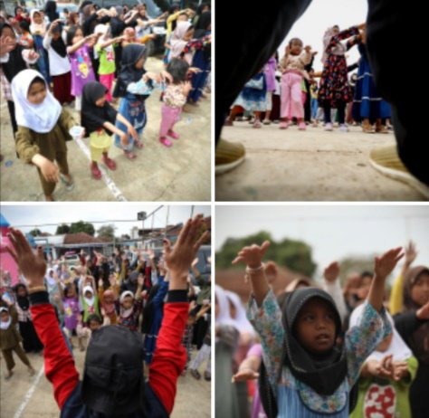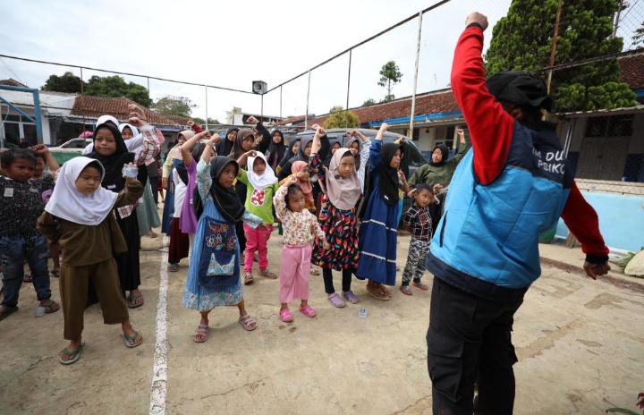 Dari balik tenda berukuran tak kurang dari 6×10 meter, sorak-sorai anak-anak pun bak memecah lara, mengubah duka menjadi suka. Satu demi satu, mereka berebut kesempatan menjawab pertanyaan dari guru pendamping. Tak ragu, mereka bahkan turut ambil bagian untuk maju ke depan saat diberi kesempatan untuk bernyanyi dan memperagakan bagaimana cuci tangan yang benar.