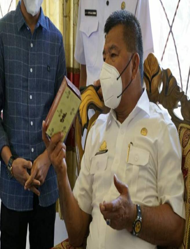 Saat owner Aksata Dodol, Rahman memperkenalkan kepada Bupati Bulukumba Muchtar Ali Yusuf di sebuah kegiatan pelatihan beberapa hari yang lalu.
