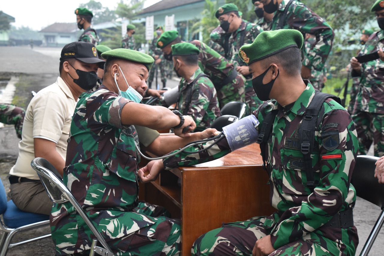 “Dengan dilakukannya pengecekan tensi ini, setiap personel dapat mengetahui kondisi tubuh yang sebenarnya. Karenanya, saya menghimbau kepada segenap personel baik prajurit dan PNS nya, apabila dalam pengecekan ini dirasa tidak normal tekanan darahnya, agar waspada dan berhati-hati dalam melaksanakan kegiatan, sesuaikan kemampuan dengan kondisi kesehatannya”, himbaunya.