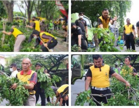 Lantaran dinilai rawan tumbang saat terjadi hujan dan angin kencang, dipimpin Kapolres Metro Tangerang Kota Kombes Pol Zain Dwi Nugroho, 45 personel gabungan melakukan penebangan ranting pohon saat melaksanakan Kerja Bakti bersama Dinas Pertamanan dan Satpol PP. Sabtu (26/11/2022).