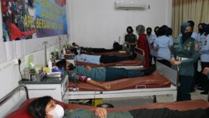 PONTIANAK | Wanita TNI di wilayah garnizun Pontianak menggelar kegiatan bakti sosial donor darah bertempat di Kantor Palang Merah Indonesia (PMI) Kota Pontianak, Jalan Jenderal Ahmad Yani, Pontianak Selatan, Kota Pontianak.
