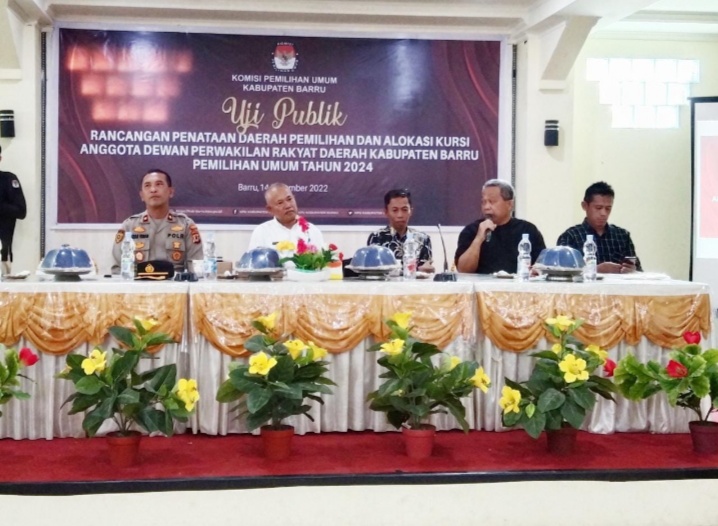 Untuk Kab. Barru sendiri ada dua rancangan dapil yang diuji publik tersebut adalah rancangan pertama terdiri atas lima dapil sebagaimana merupakan dapil yang sama seperti perhelatan Pemilu 2019.