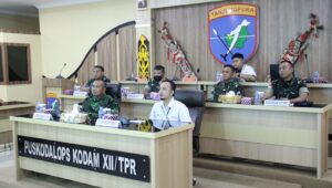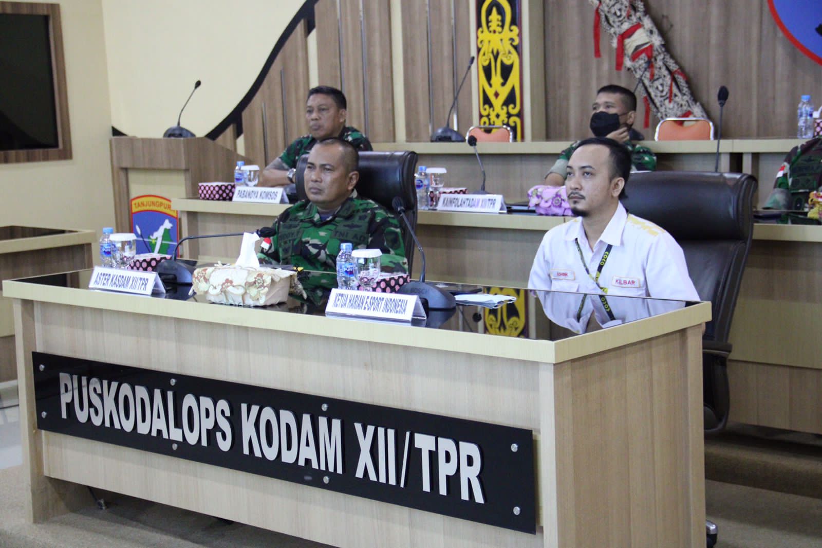 KUBU RAYA | Asisten Teritorial Kasdam XII/Tanjungpura, Kolonel Inf Ruddy Trenggono, S.Sos, didampingi Ketua Harian Pengprov ESI Kalbar mengikuti Opening Ceremony Esports Piala Kasad tahun 2022 secara virtual dari Ruang Rapat Puskodalopsdam XII/Tpr.