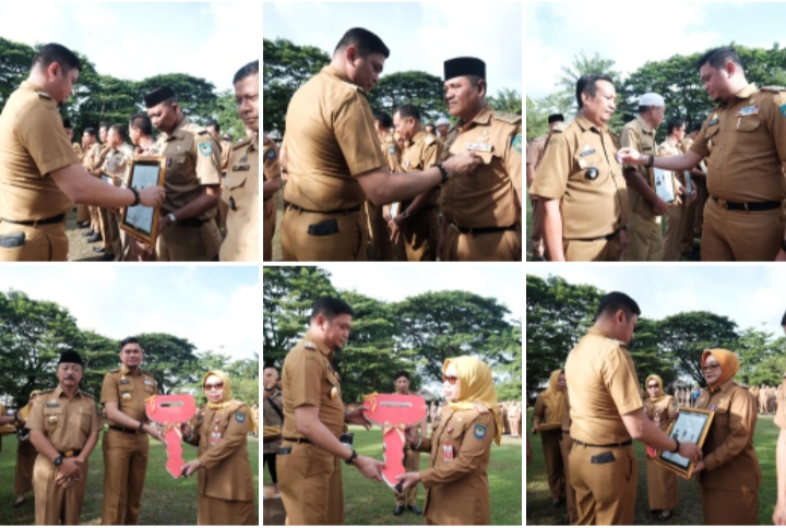 Penyerahan ini berlangsung disela-sela pelaksanaan Upacara Bendera yang berlangsung di Lapangan Upacara Kantor Bupati Gowa, Senin (2/1).