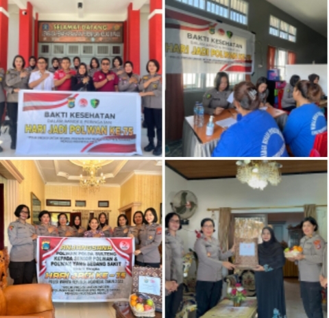“Bakti kesehatan Hari Jadi Polwan ke-75 Polda Sulteng, hari ini digelar di Lapas Perempuan dan Anak yang ada di Kec. Dolo Kab. Sigi,” ungkap AKBP Esriati Ndese, Perwira Koodinator (Pakor) Polwan Polda Sulteng