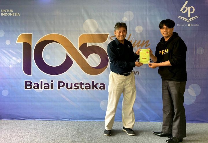 Direktur Utama Balai Pustaka, Dr. Ir. Achmad Fachrodji, M.M., secara simbolis menyerahkan bukti terbit novel “Rumah di Tengah Sawah” karya Muhammad Subhan di Kafe Sastra Balai Pustaka, Jakarta, beberapa waktu lalu. (Foto: Ist.)