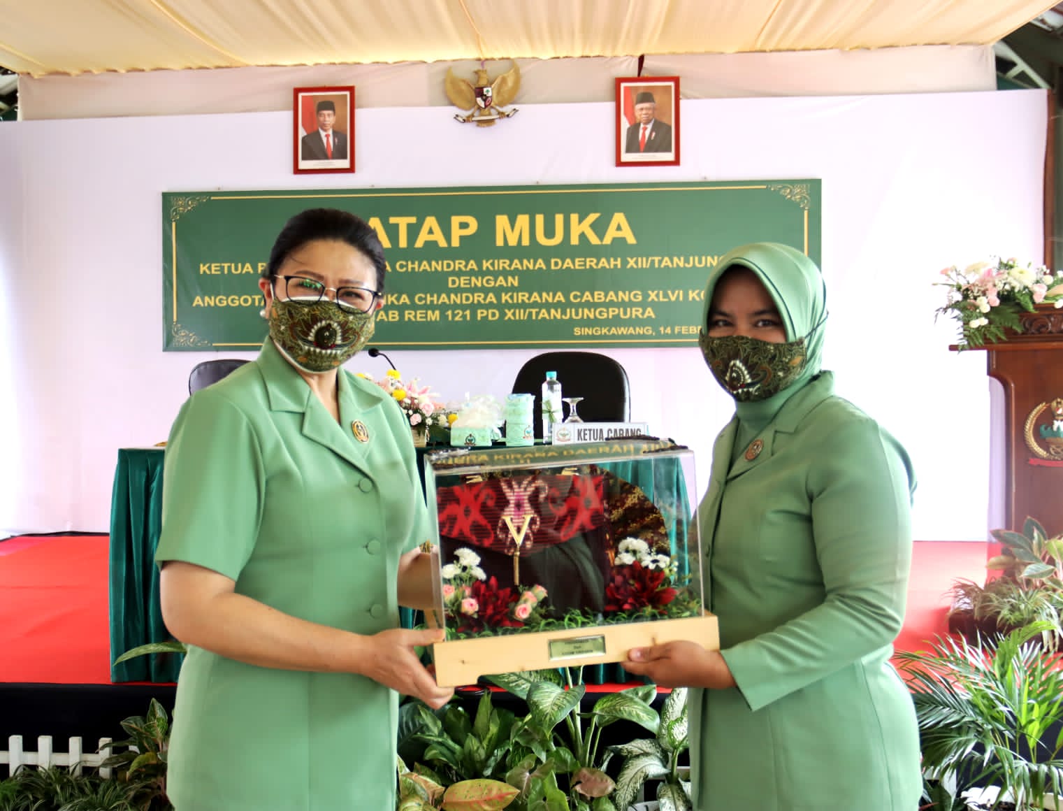 SINGKAWANG | Dalam rangka silaturahmi dan membangun kebersamaan, Ketua Persit Kartika Chandra Kirana Daerah XII/Tanjungpura, Ny. Helly Sulaiman Agusto melaksanakan tatap muka dengan anggota Persit KCK Ranting 3 Yonif 641 Cabang LIX Brigif 19 bertempat di Aula Mayonif Raider 641/Bru, Singkawang.