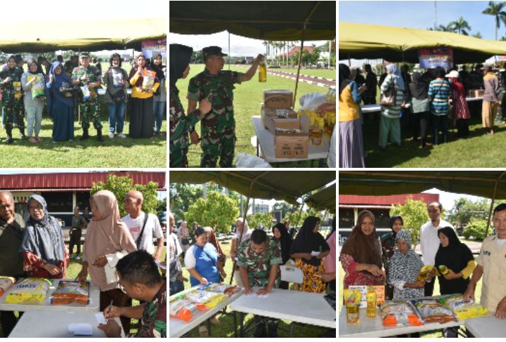 Kolonel Jamaluddin mengungkapkan, dalam kegiatan ini disediakan sembako diantaranya beras sera Ramos 5 kg, beras APHP 5 kg, kemasan 5 kg, minyak goreng kemasan 1 liter, minyak goreng botol 800 ml, tepung terigu segitiga biru 1 kg, gula rose brand 1 kg.