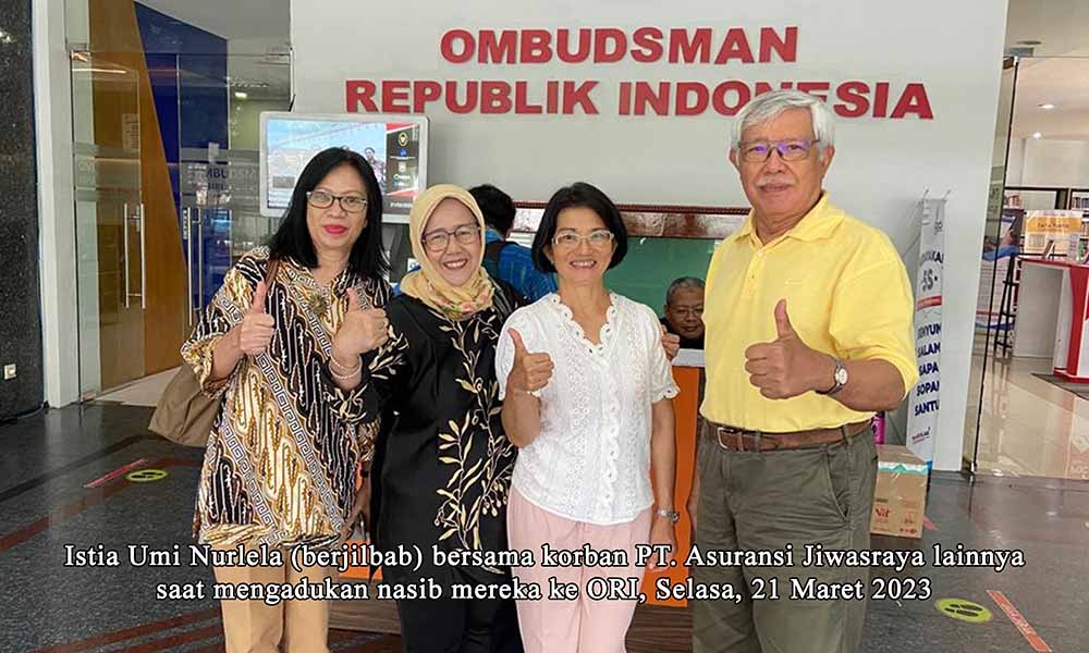 “Kali ini kami ingin menjajaki peluang untuk berjuang melalui jalur Ombudsman karena melalui jalur hukum dengan cara menggugat di Pengadilan Negeri Jakarta Pusat mengalami kebuntuan,” ujar salah satu perwakilan nasabah Jiwasraya, Istia Umi Nurlela, usai menghadap Ombudsman, 21 Maret 2023.
