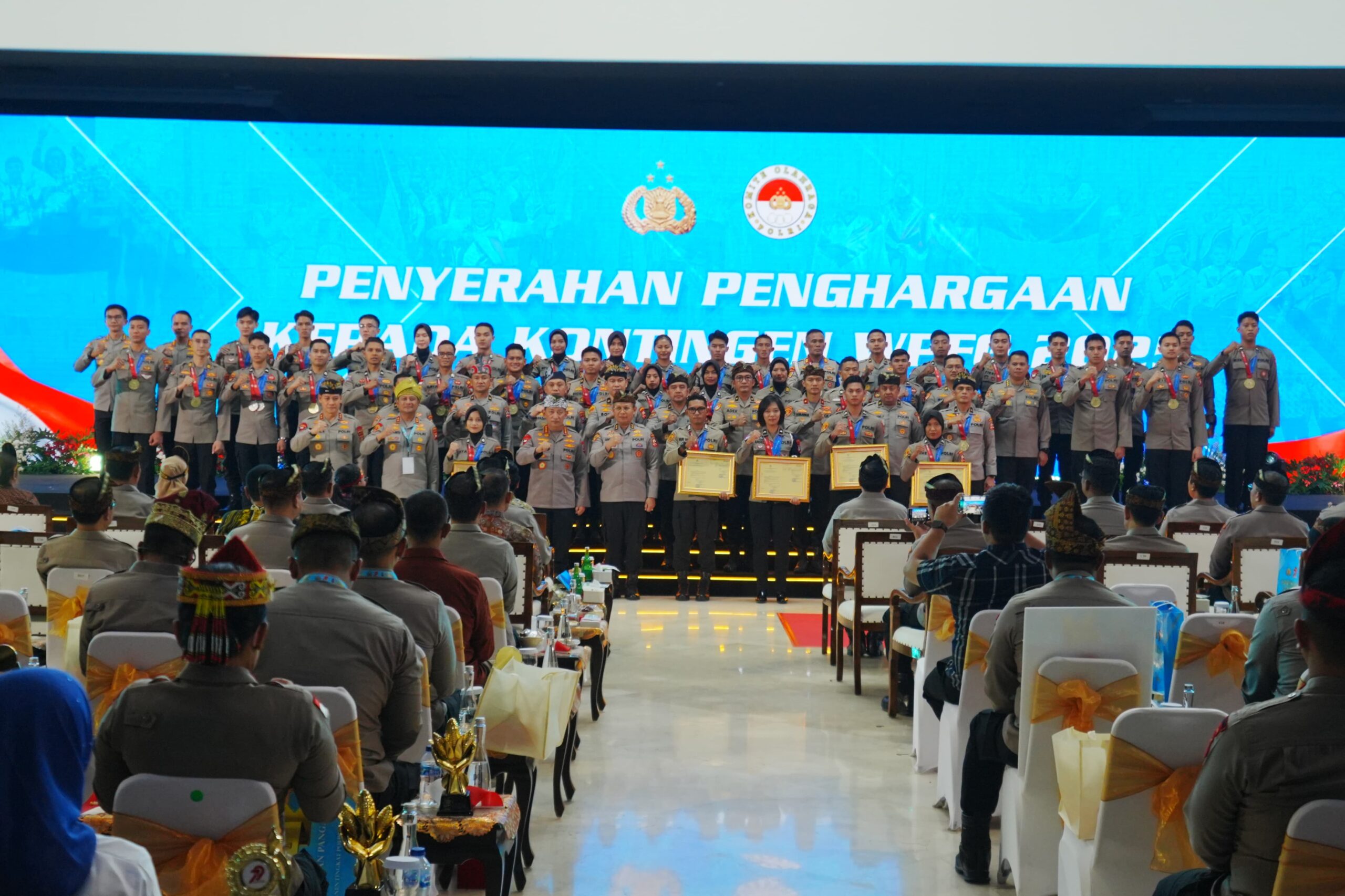 Dalam kesempatan itu, Kapolri turut memberi penghargaan kepada Kontingen Polri yang baru saja menorehkan prestasi dalam ajang World Police and Fire Games 2025 di Birmingham, Alabama, Amerika Serikat. Polri sukses meraih 50 medali dan masuk dalam 10 besar dari 70 negara peserta.