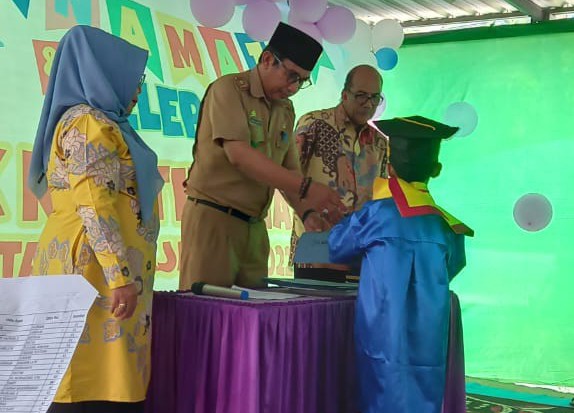 Acara penamatan yang mengusung tema Mengukir prestasi menuju genersdi cerdas,ceria dan beraklah muliah tersebut, berlangsung dihalaman TK Kartini Madello jalan Sultan Hasanuddin Madello Kec Balusu, Senin 19/6/2023.