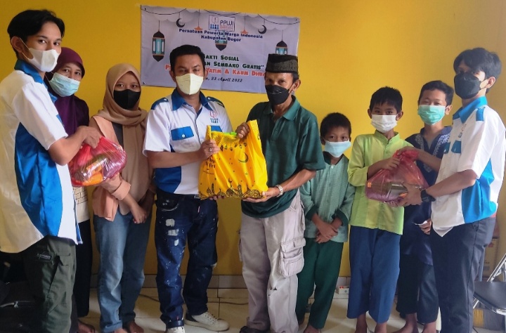 BOGOR | Persatuan Pewarta Warga Indonesia (PPWI) Kabupaten Bogor membagikan puluhan paket sembako untuk anak yatim dan piatu serta warga kurang mampu yang tinggal di sekitar Sekretariat PPWI, Pakansari, Cibinong, Kabupaten Bogor.