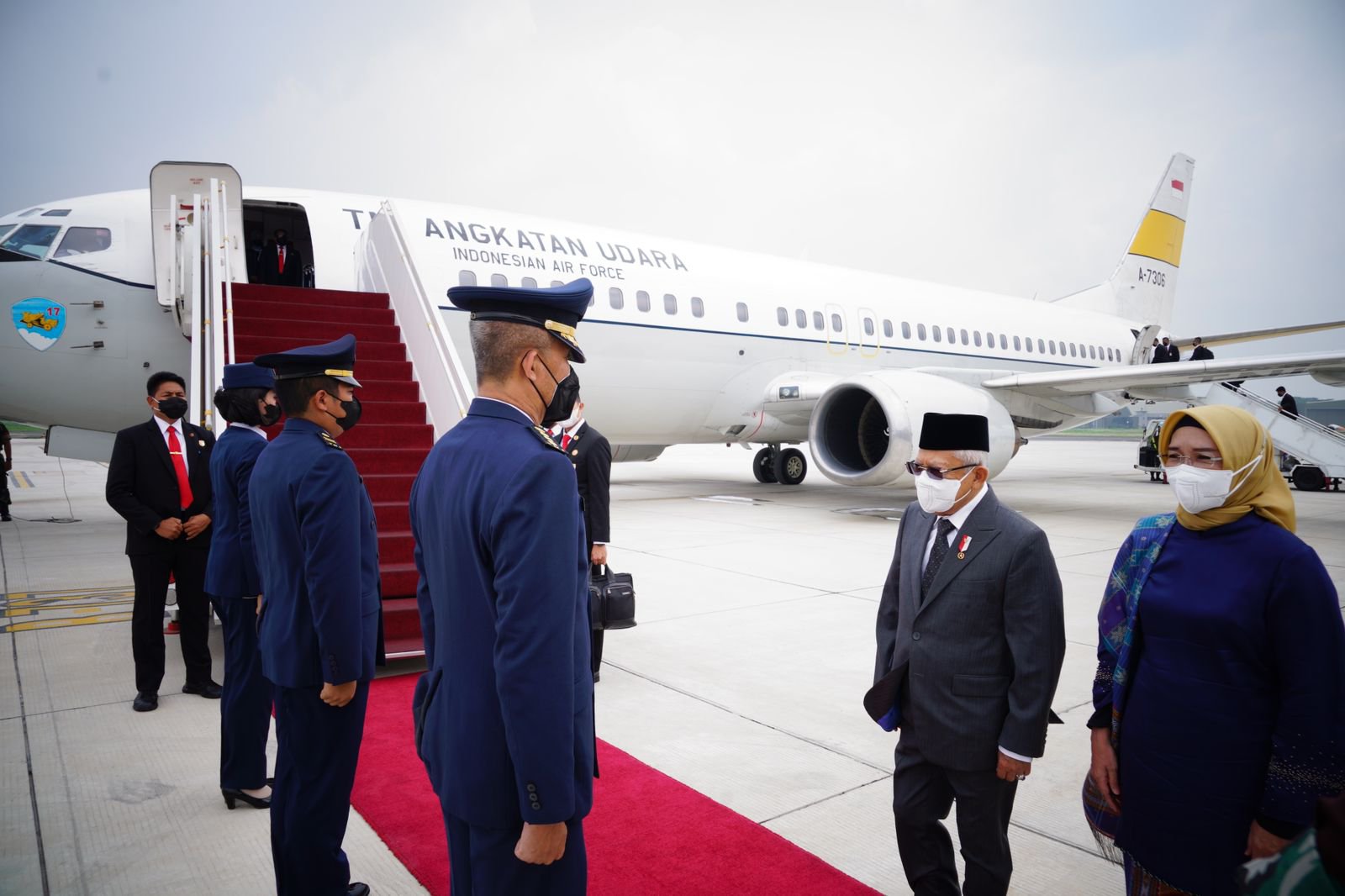 Turut mendampingi Wapres dalam rombongan pesawat diantaranya Kepala Sekretariat Wapres Ahmad Erani Yustika, Deputi Bidang Dukungan Kebijakan Ekonomi dan Peningkatan Daya Saing Guntur Iman Nefianto, Staf Khusus Wakil Presiden Masduki Baidlowi,