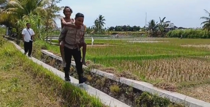 LOMBOK UTARA NTB – Polda NTB, Bripka Sahardi selaku Babinkamtibmas Desa Pemenang Barat yang di dampingi Kaur perencanaan Desa Pemenang Barat saudara Sakrani dan tenaga kesehatan Pustu Telaga wareng saudara Anis Alwaeni melaksanakan evakuasi salah satu warga yang dilaporkan hilang dan ditemukan di gubuk Persawahan Dusun Telaga Wareng Desa Pemenang Barat Kecamatan Pemenang KLU, Selasa, 15/8/2023.