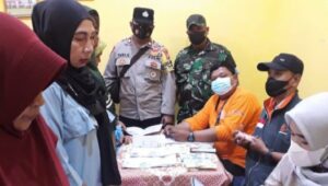 TELUKNAGA, KAB.TANGGERANG, BANTEN | Bhabinkamtibmas Desa Tanjung Pasir Polsek Teluknaga Polres Metro Tangerang Kota Aiptu Yudi melaksanakan pengamanan dan pemantauan penyaluran bantu sosial BLT dari pemerintah pusat melalui kantor Pos Indonesia cabang Teluknaga, Rabu (30/11/2022).