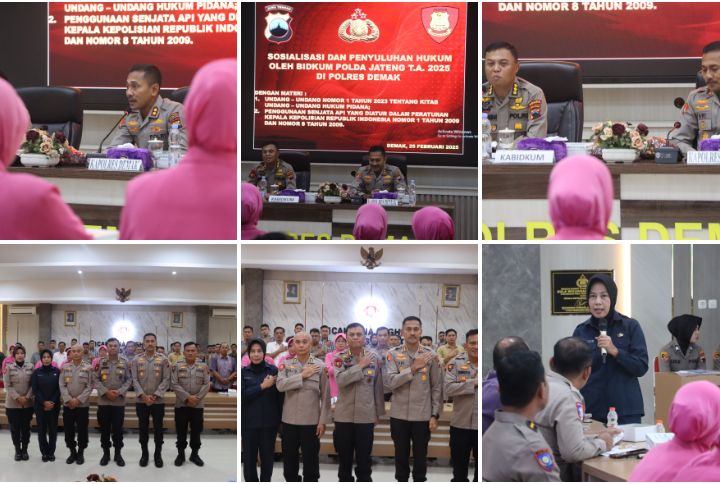 INFOINDONESIAINEWS.COM | DEMAK – Bidang Hukum (Bidkum) Polda Jawa Tengah menggelar sosialisasi dan penyuluhan hukum kepada anggota dan Bhayangkari Polres Demak di Aula Wicaksana Laghawa, Selasa (25/2/2025).