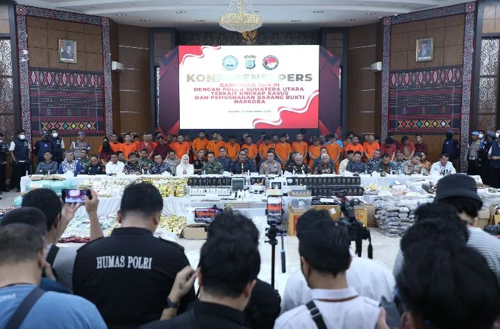 Adapun konferensi pers pada hari ini merupakan operasi gabungan antara BNN, yang dalam hal ini dilakukan oleh BNN Provinsi Sumatera Utara dan BNN Provinsi Aceh, bersama dengan Polda Sumatera Utara. Sinergi ini menunjukkan bukti nyata bahwa perang melawan narkotika merupakan tugas bersama dan tidak mengenal batas wilayah dan sekat antar instansi.