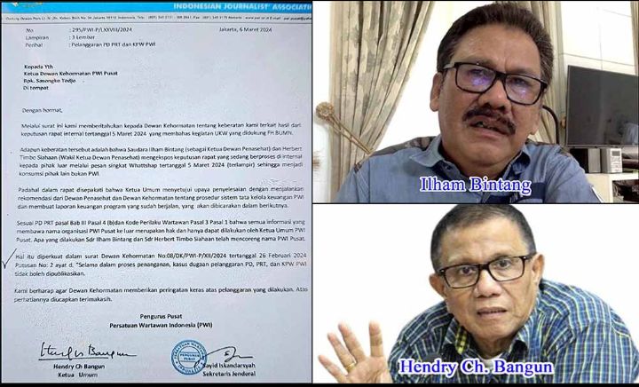 Surat tersebut dikeluarkan tanggal 6 Maret 2024, ditandatangani Ketua Umum PWI Pusat, Hendry Ch Bangun dan Sekjen PWI Pusat, Sayid Iskandarsyah. Berikut ini secara lengkap isi surat Pengurus PWI Pusat ke Dewan Kehormatan dimaksud yang disadur dari kopian surat yang diterima media ini.