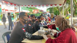 KALBAR | Satbrimob Polda Kalbar kembali berpartisipasi didalam kegiatan donor darah yang diselenggarakan oleh Palang Merah Indonesia (PMI) di kantor PMI Kota Pontianak. Sabtu (28/05/22).