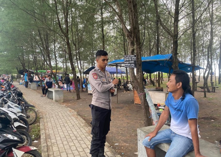 INFOINDONESIA – POLRES TASIKMALAYA KABUPATEN POLDA JABAR | Bhabinkamtibmas Polsek Cikalong Polres Tasikmalaya Briptu Miftahul Khoer pada hari minggu pagi kemarin melaksanakan giat Patroli kelokasi tempat ngabuburit di area pantai pangkalan serta sekaligus bersilaturahmi dengan warga masyarakat para pengunjung diobjek wisata pantai pangkalan yang terletak di kecamatan Cikalong Kabupaten Tasikmalaya.