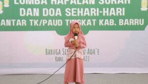 BARRU |Pokja Paud TP PKK Kabupaten Barru yang diketuai oleh drg. Hj. Ulfah Nurul Huda Suardi, MARS meriahkan suasana Ramadan dengan menggelar kegiatan Lomba Hafalan Surah dan Doa Sehari-hari antar TK/PAUD Tingkat Kabupaten Barru, di Baruga Singkeru Ada’e, Rabu (20/4/2022).