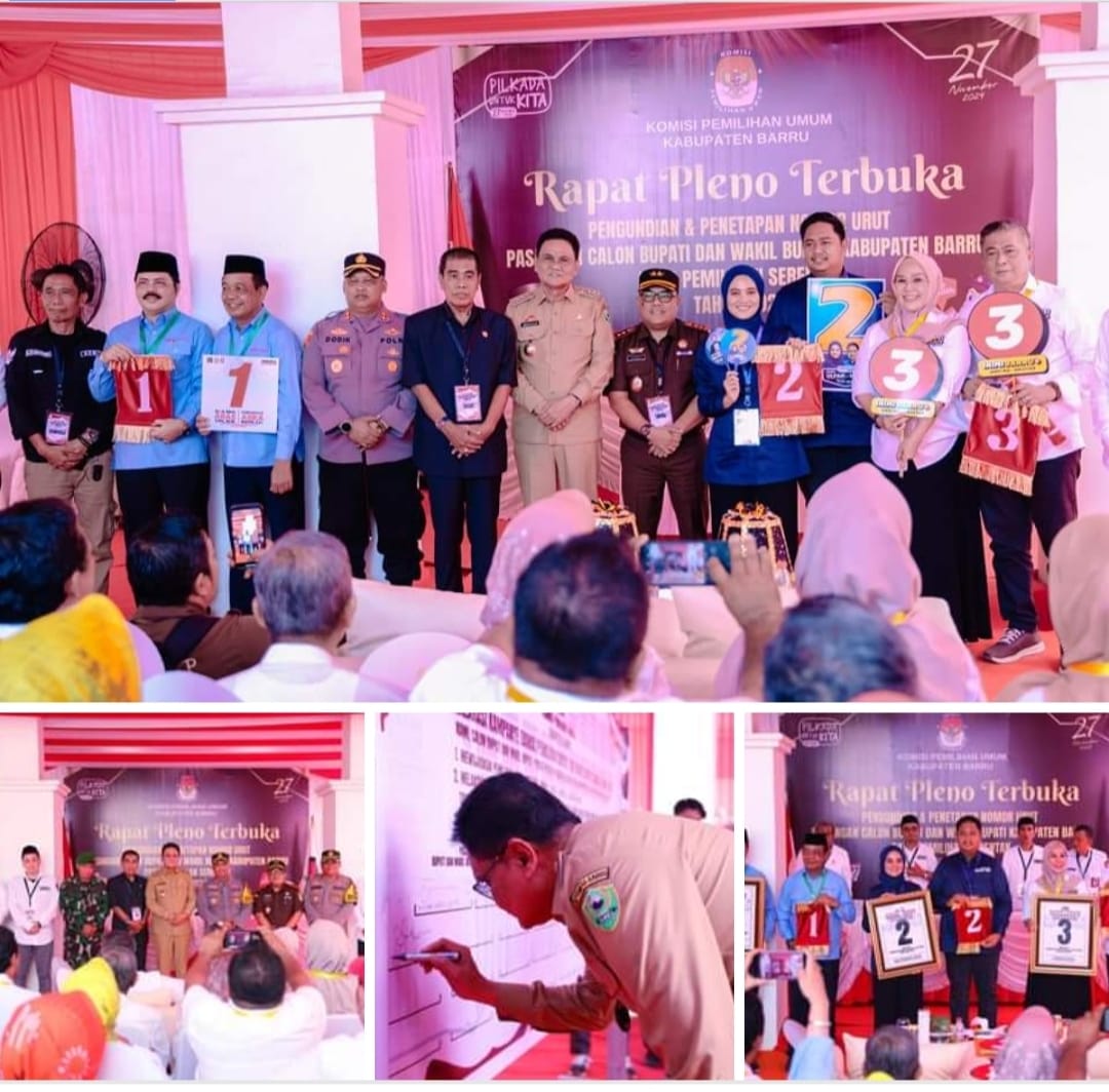mengambil nomor urut calon Bupati Barru dan Wakil Bupati Barru dengan hasilnya sebagai berikut, nomor urut 1 untuk Paslon H.Aras- Aska, nomor urut 2 untuk Paslon Dokter Ulfah-MHG, dan nomor urut 3 untuk Andi Ina – Abustan.