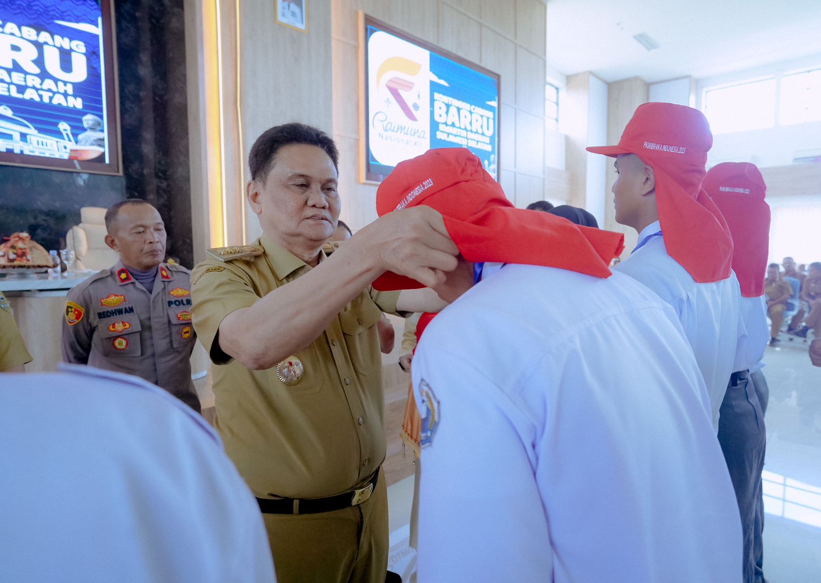 Bupati Barru pada kesempatannya juga melepas 2 putra dan 2 putri yang berhasil mewakili Kabupaten Barru ke Paskibraka Tingkat Provinsi Sulsel.
