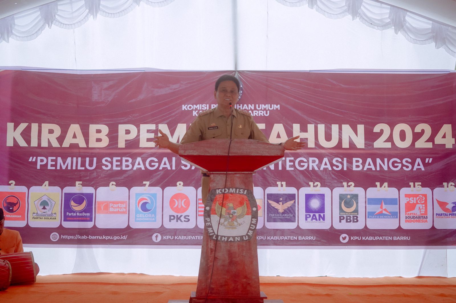 Dalam sambutannya Bupati Barru Ir. H. Suardi Saleh, M. Si mengatakan atas nama Pemerintah Kabupaten Barru mengapresiasi kegiatan Kirab Pemilu ini.