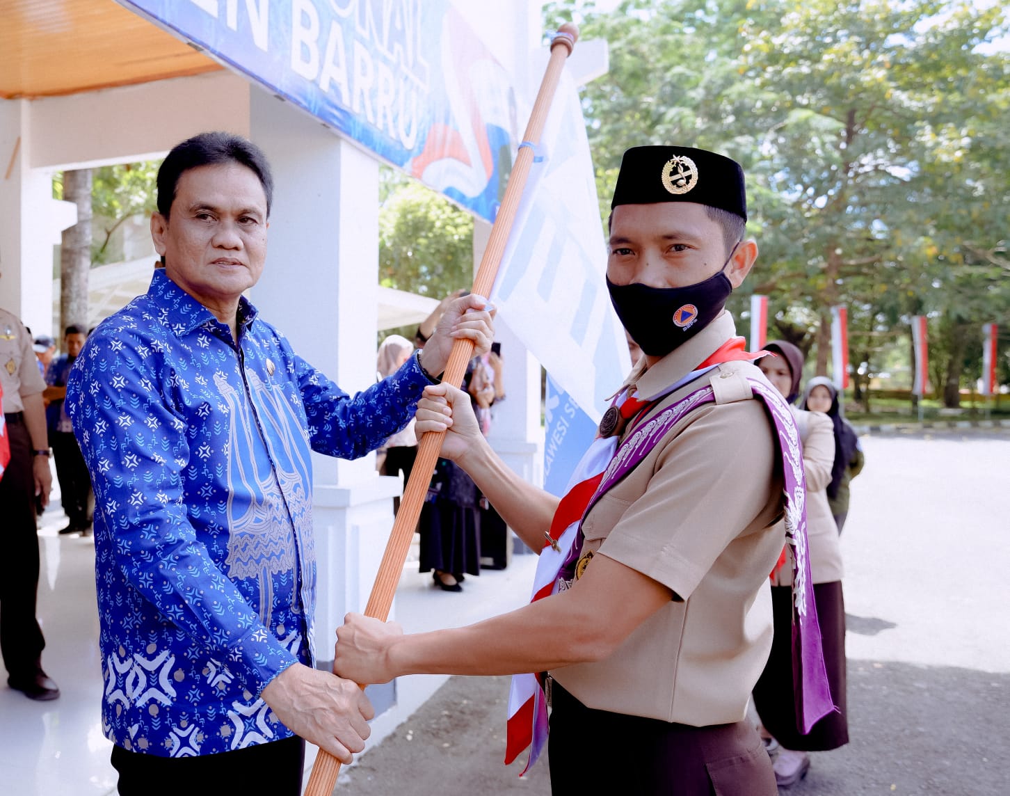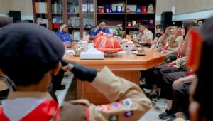 BARRU | Bupati Barru Ir. H. Suardi Saleh, M.Si., melepas secara resmi kontingen Kwarcab Gerakan Pramuka Penggalang Kabupaten Barru, diruang kerja Bupati Barru, pada Kamis (4/8/2022).