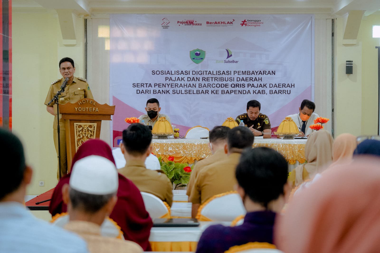 Dalam sambutan Bupati Barru Ir. H. Suardi Saleh, M.Si Mengapresiasi Kegiatan Digitalisasi Pembayaran Pajak dan Retribusi Daerah baik itu pelaksana kegiatan dan pelaku usaha.