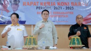 “Visi dan Keenam Misi sebagai Penjabaran Visi KONI Barru Tahun 2025, yang hari ini akan kita bahas dan sepakati dalam Rapat Kerja, semoga tersusun Program Kegiatan yang mewadahi semua kebutuhan serta menjadi Gentleman Agreement atau Komitmen Bersama KONI dan Para Pelaku Olahraga di Kabupaten Barru,” harap mantan Direksi Bosowa Corporindo ini