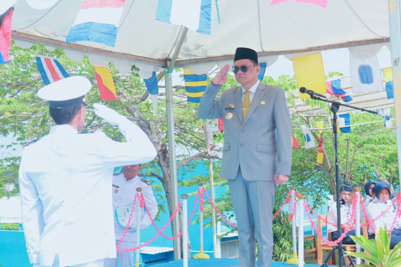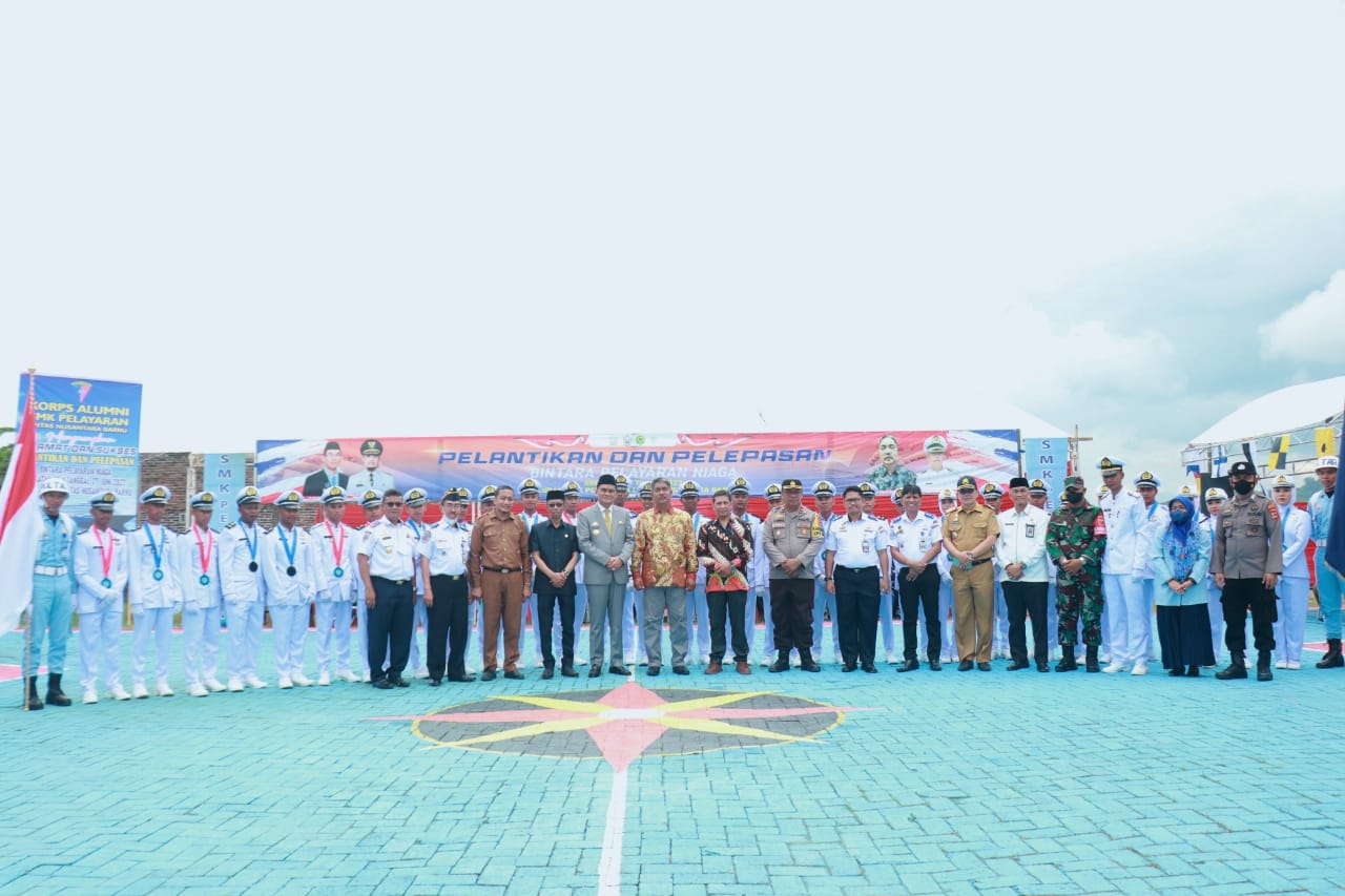BARRU | Bupati Barru, Ir. H. Suardi Saleh, M.Si memimpin upacara Pelantikan dan Pelepasan Bintara Pelayaran angkatan ke V tahun 2022 lulusan sekolah SMK Pelayaran Lintas Niaga Nusantara Barru, di Lajulo, Kelurahan Tuwung, Kecamatan Barru, Kabupaten Barru, Sulawesi Selatan, Senin (27/07/2022).