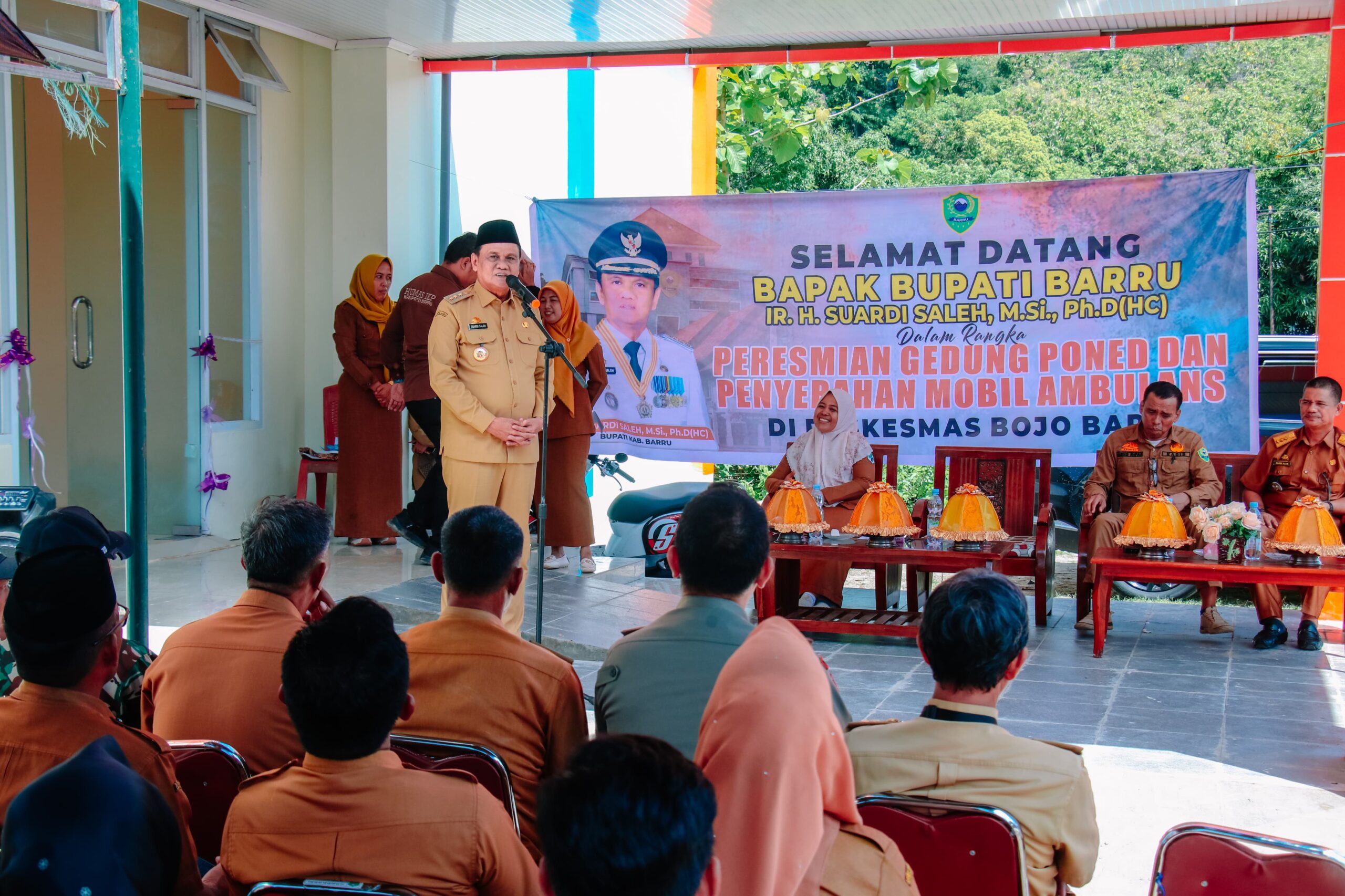 Terkait penyerahan mobil ambulance, Bupati Barru menyampaikan bahwa Pemerintah Kab. Barru tahun ini telah menyerahkan 4 unit mobil ambulance masing-masing untuk Puskesmas Pujananting, Puskesmas Palanro, Puskesmas Lisu termasuk Puskesmas Bojo Baru.