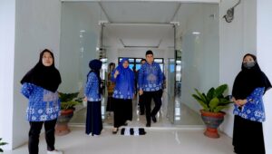 Kedatangan Bupati Barru disambut Kepala Dinas Tenaga Kerja Yossi Febrisia, S. STP. M. Si yang langsung mengecek kondisi Kantor Dinas yang baru seumur jagung tersebut.