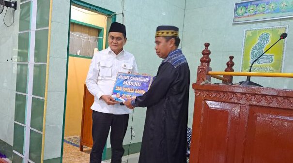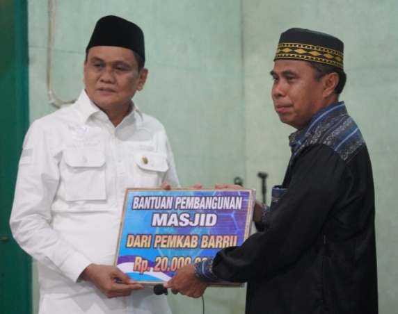 Usai memberi arahan, orang nomor satu di Kabupaten Barru itu, menyerahkan bantuan pembangunan Masjid yang diterima Panitia Pembangunan Masjid Babussalam, Drs.,M. Yaqub.,M,Pd.