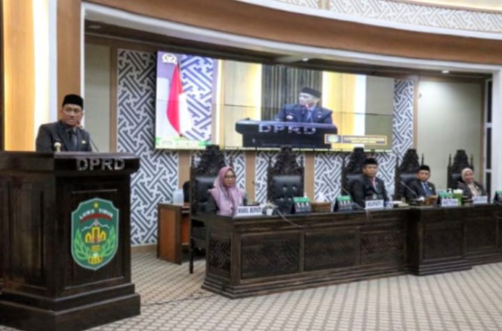 2025 – Bupati Luwu Timur, H. Irwan Bachri Syam didampingi Wakil Bupati, Hj. Puspawati Husler menyampaikan pidato pada rapat paripurna Dewan Perwakilan Rakyat Daerah (DPRD) Lutim, Kamis (06/03/2025).